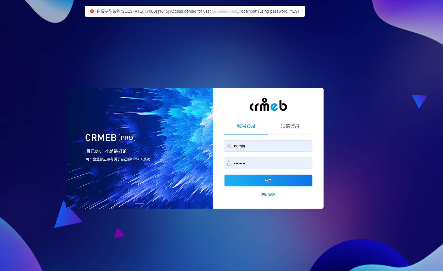 数据获取败:SQLSTATE[HYo00] [1045] Access denied for user ln'@'localhost (using password: YES)