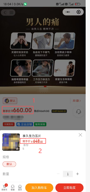 商品详情页点购买时显示的规格到手价计算方式是什么