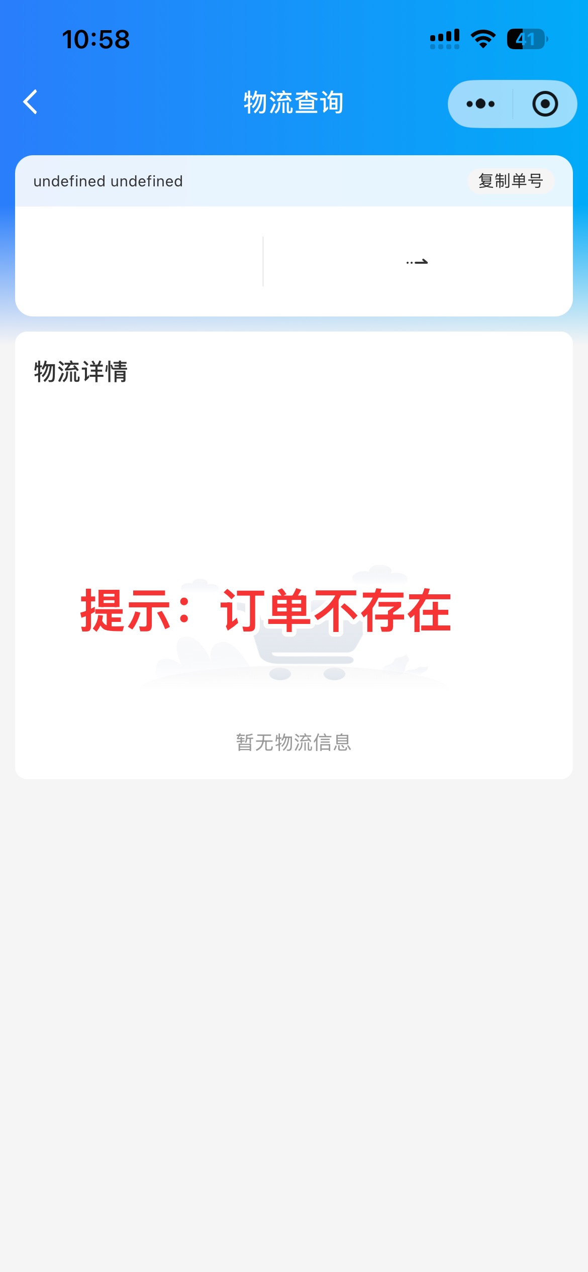 用的阿里云物流查询,配置正确,实际已经收到货,PC后台物流详情查询有轨迹详情,但是手机端查询不到,提示:订单不存在!请问这是什么原因导致的,大神们?