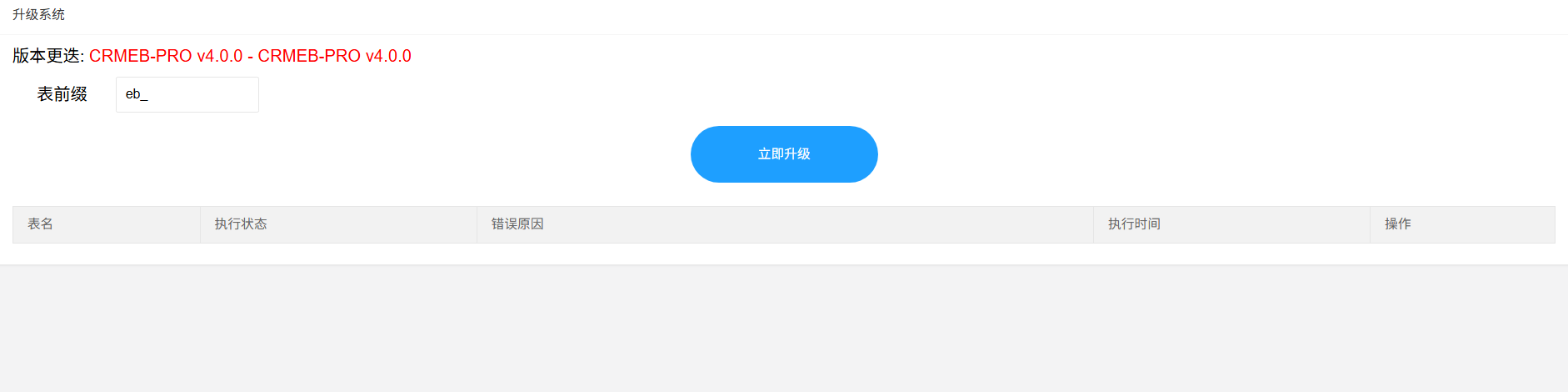 请问覆盖后进入升级界面,为什么点立即升级无反应?是表前缀这里要填什么才能升级?