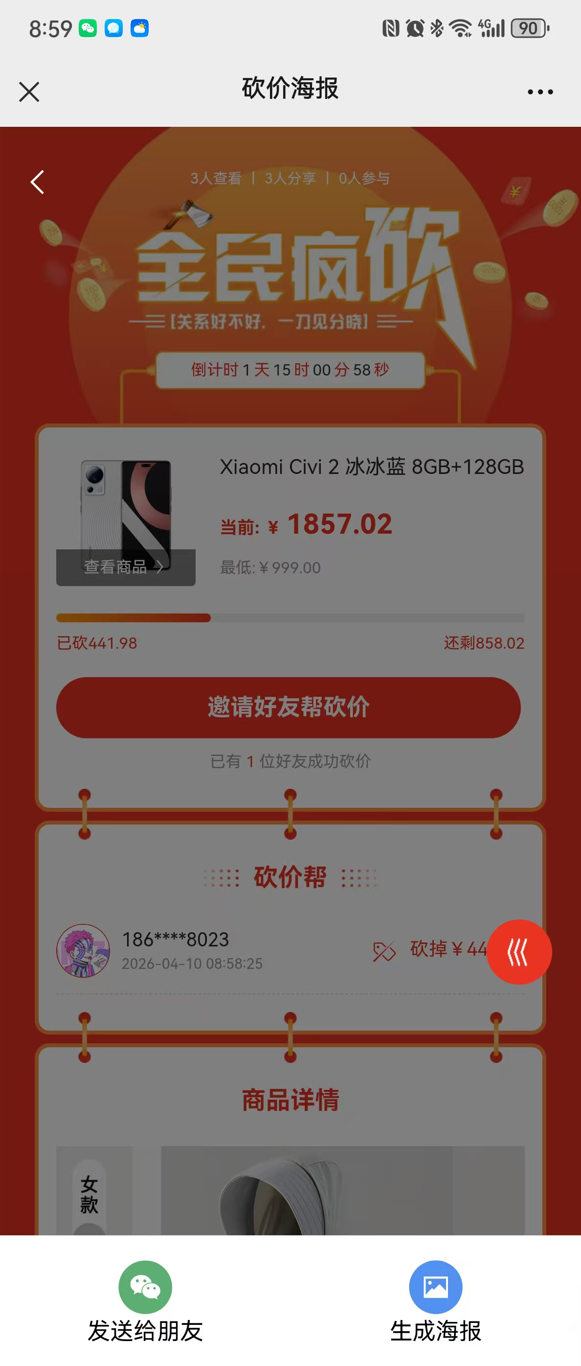 前两天砍价商品点击分享时是可以选择发送给朋友或者生成海报,今天再分享只有生成海报一个选项了,这是什么原因