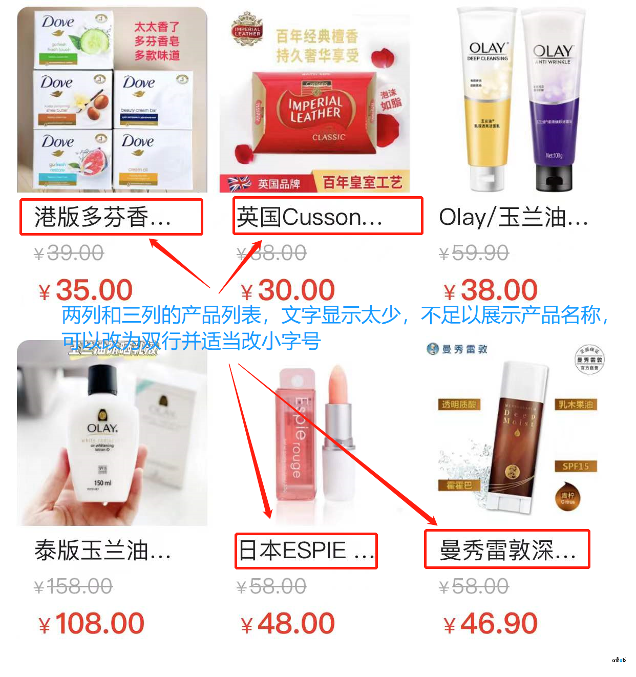 产品列表在双列或三列显示时,展示文字太少,大多数情况下不足以展示产品名称及特点,
