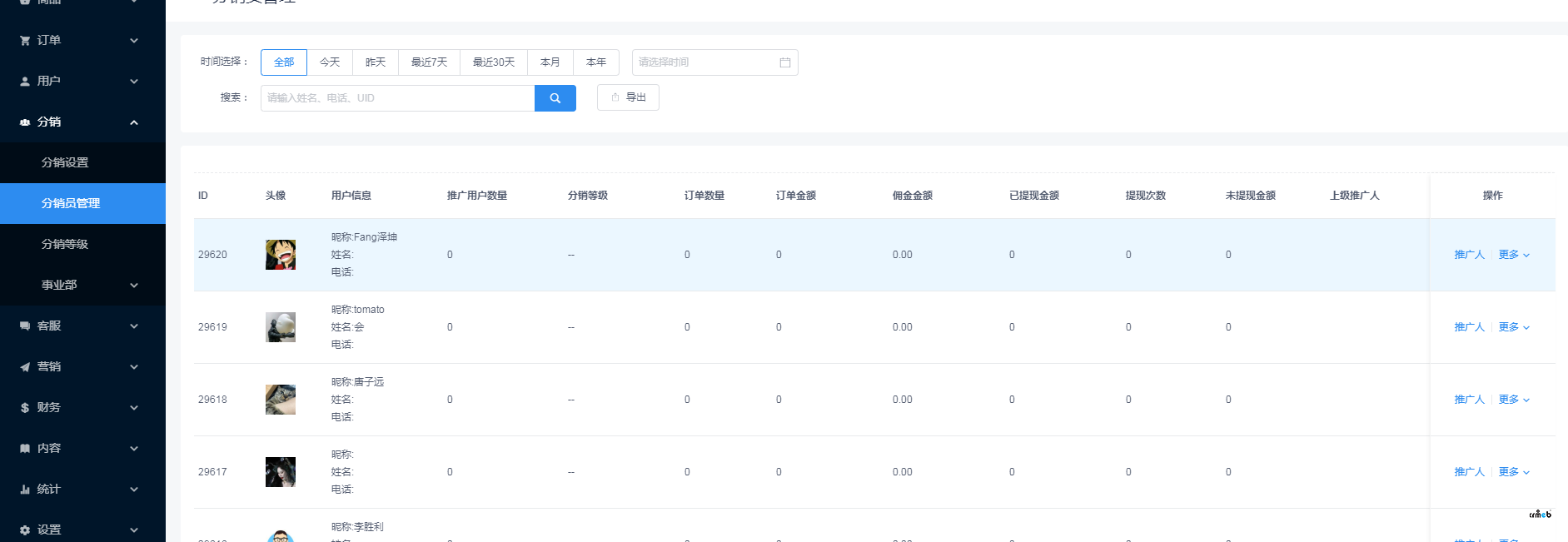 后台设置指定人员分销,分销人员没显示,哪里设置问题