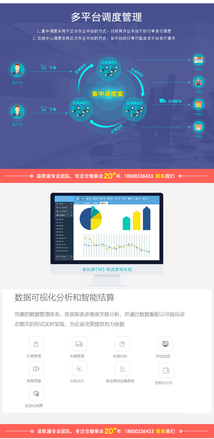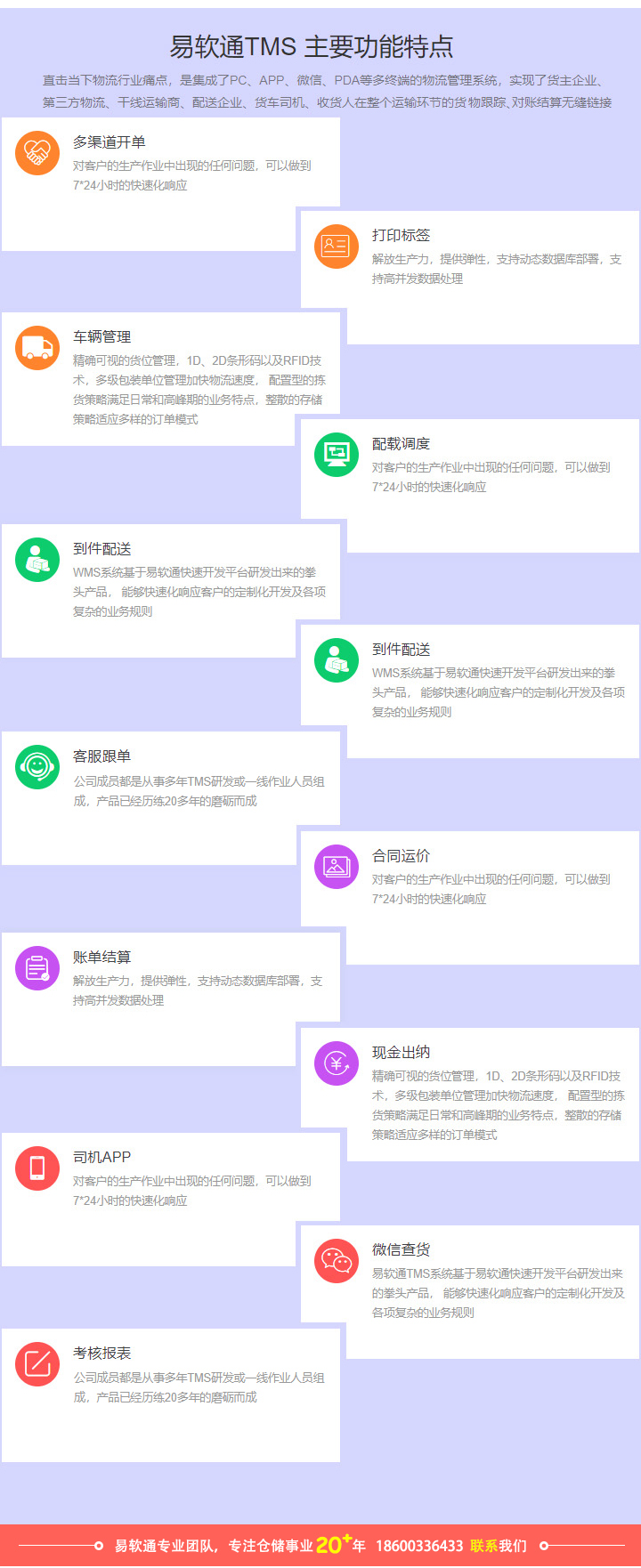 产品简介:易软通TMS物流管理系统企业版是一款基于云计算与AI技术的智能化运输管理平台,专为中大型企业、物流公司及供应链服务商设计。系统通过智能调度、全链路可视化、多角色协同三大核心能力,帮助企业实现运输流程数字化、资源整合高效化、运营成本集约化,适用于电商、零售、制造、冷链、跨境等多行业复杂物流场景。