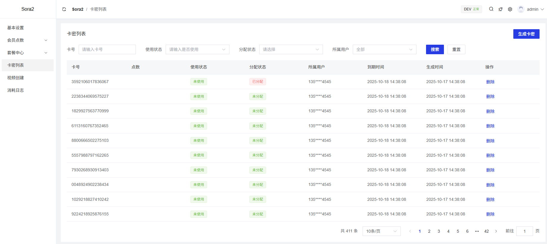 5、卡密,支持用户自主购买,支持到期时间,绑定归属者