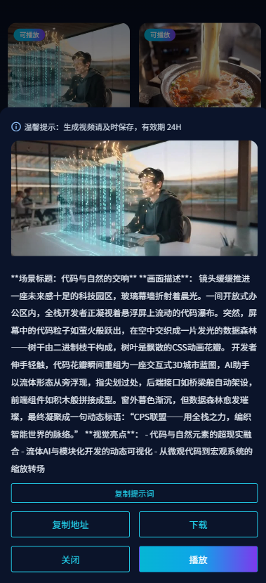 一张图,Sora 一键生成产品宣传视频只要一张图,一句话,即可生成各类视频。
