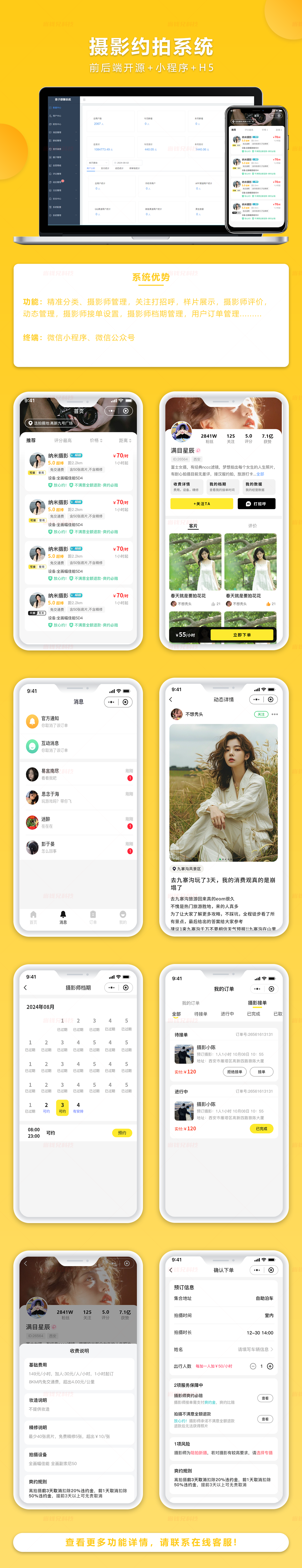 适配微信小程序+H5+公众号,一套源码,无论你需要哪个端我们都是一套源码,所有涉及的第三方费用自己承担,销售价格就是源码售价 !