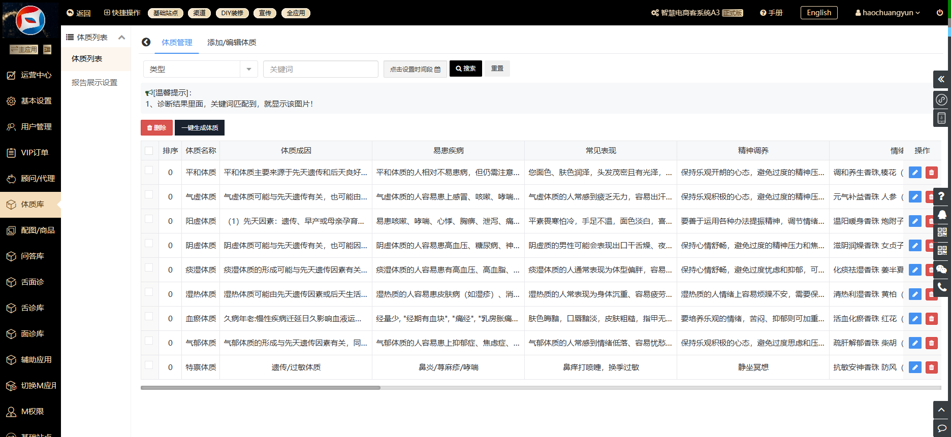 4、内含体质库机制(自定义体质数据,自由匹配商品,服务等。更好的运营转化变现,)