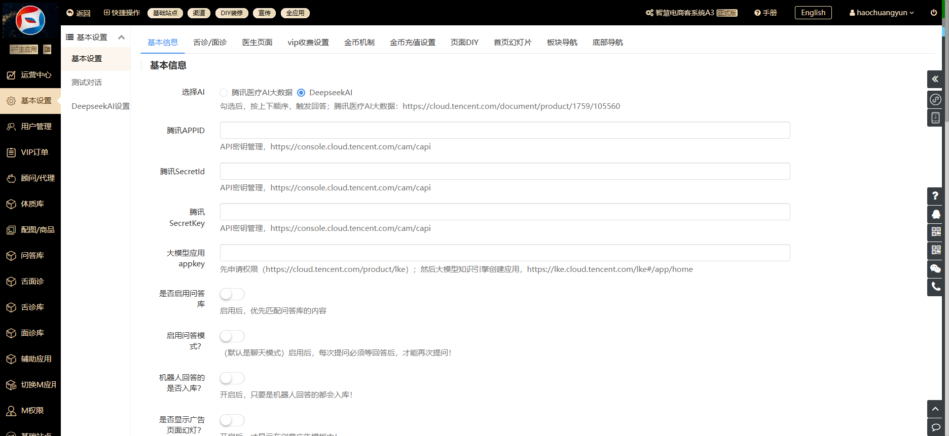 本系统接入:腾讯医疗AI大数据、DeepseekAI、贝业斯舌诊、脉景舌诊等多家医疗AI大模型系统。