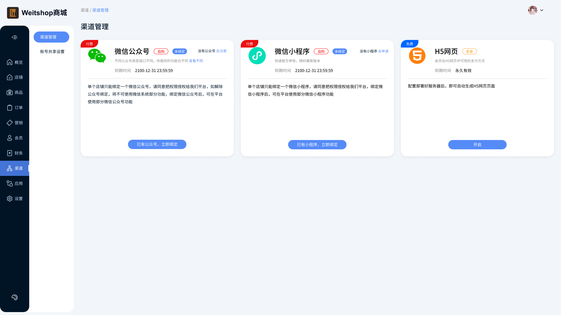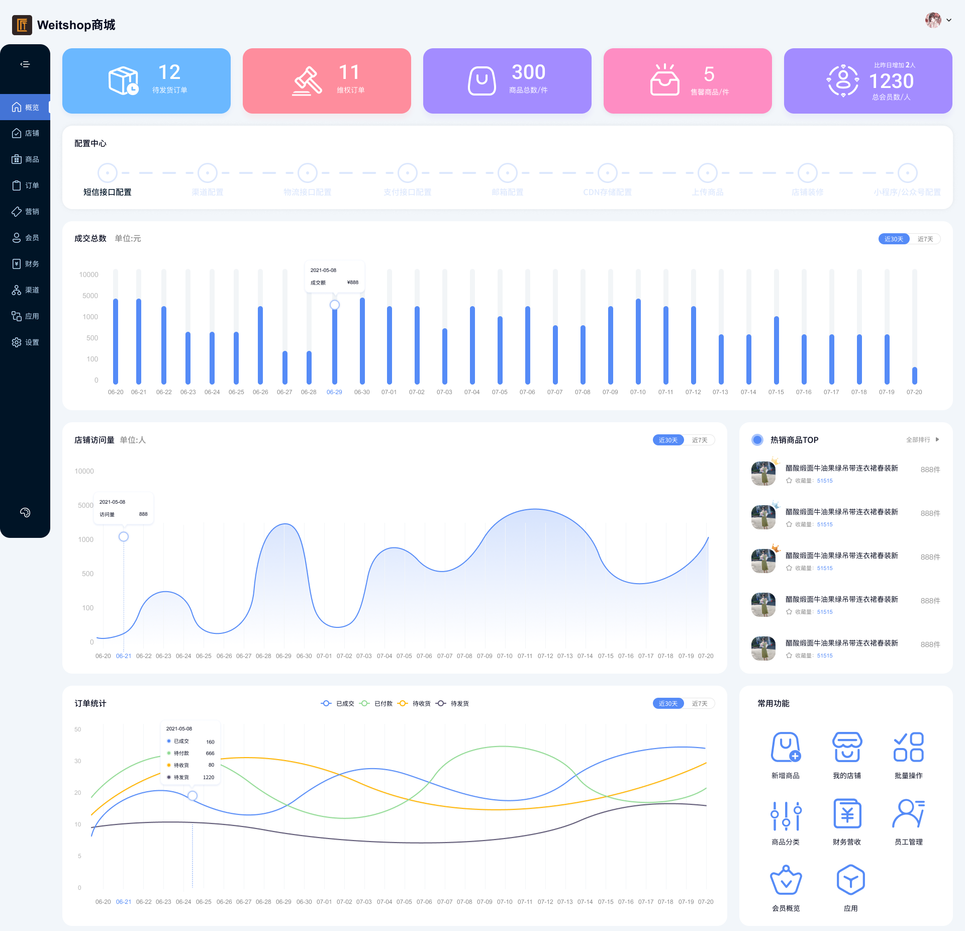 WEITSHOP 是一款强大的全域集电商系统,组合各行业应用赋能多元化电商服务解决方案,面向全国向中小型企业,为综合领域和垂直行业提供优质电商解决方案及多元化电商服务和解决方案,满足服务商切换多场景需求,帮助个人及企业快速转型成为移动互联网服务商,我们全方位提供运营、技术、服务和政策支持,赋能服务商快速升级转型。