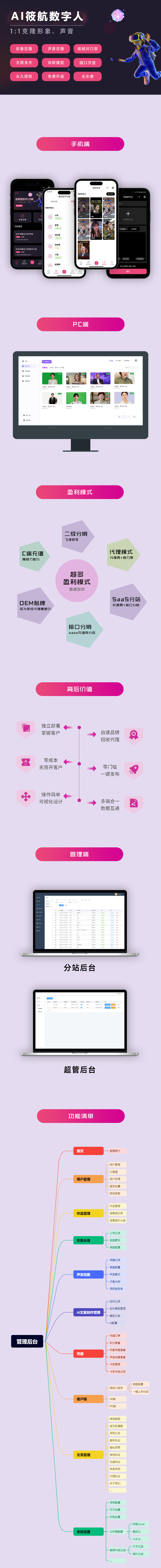 产品简介:AI数字人分身系统-口型同步无限多开贴牌OEM,自建品牌可视化设计多端合一数据互通!