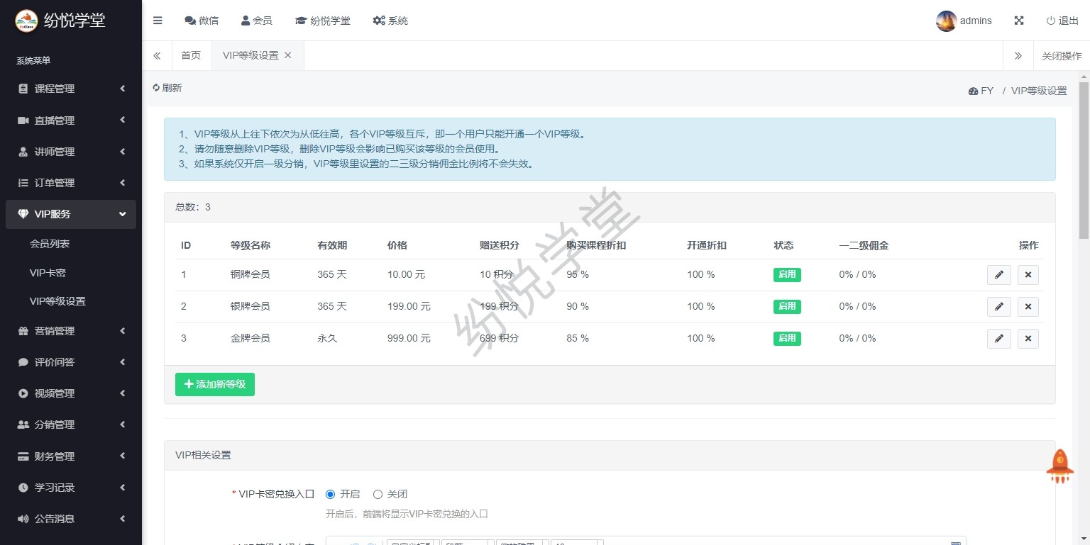 【新增】VIP会员购买学堂商城的商品折扣功能(需搭配学堂商城插件使用)